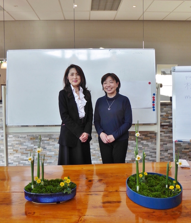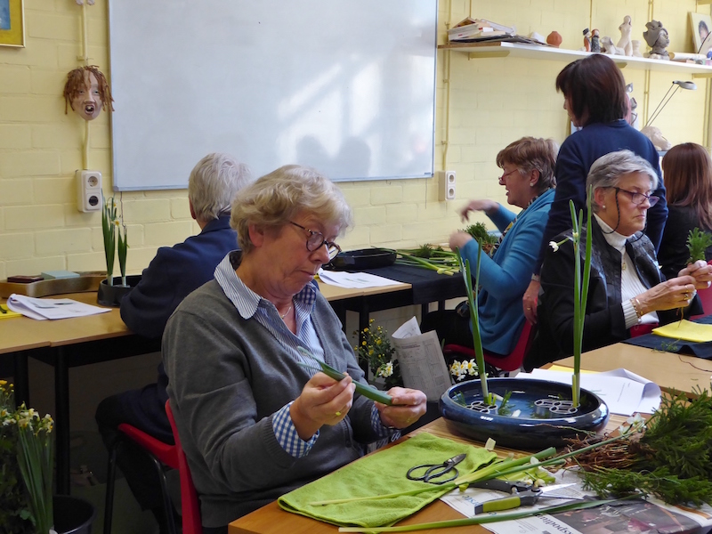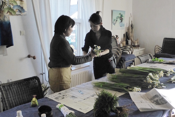 De workshops door mevrouw Hiroko Matsuki, assistant professor van de Ohara School Tokyo, vonden plaats op 21 januari 2017. Het materiaal: narcissen, Camellia japonica, winterchrysanten, varens, het kwam allemaal speciaal voor deze workshops uit Japan.