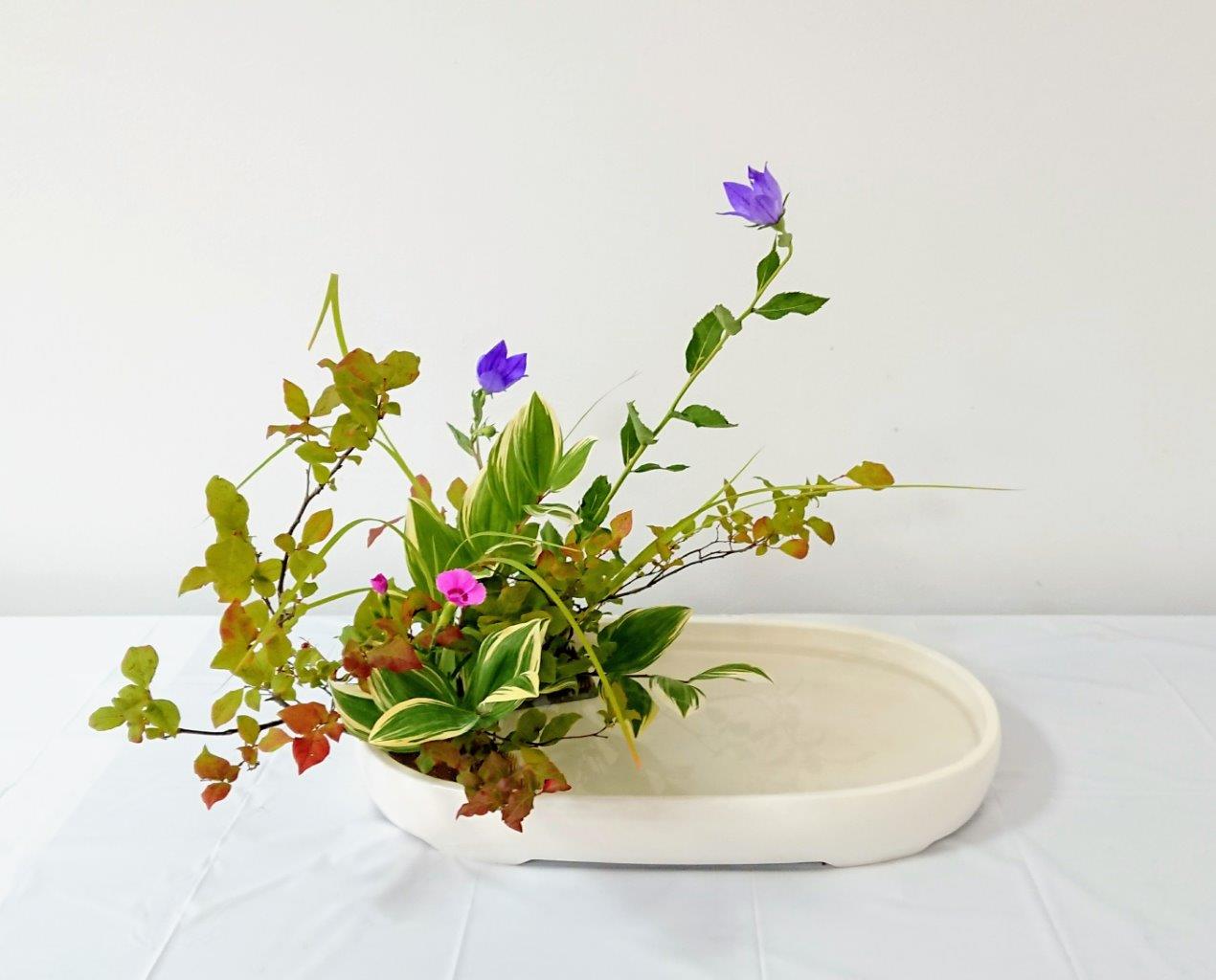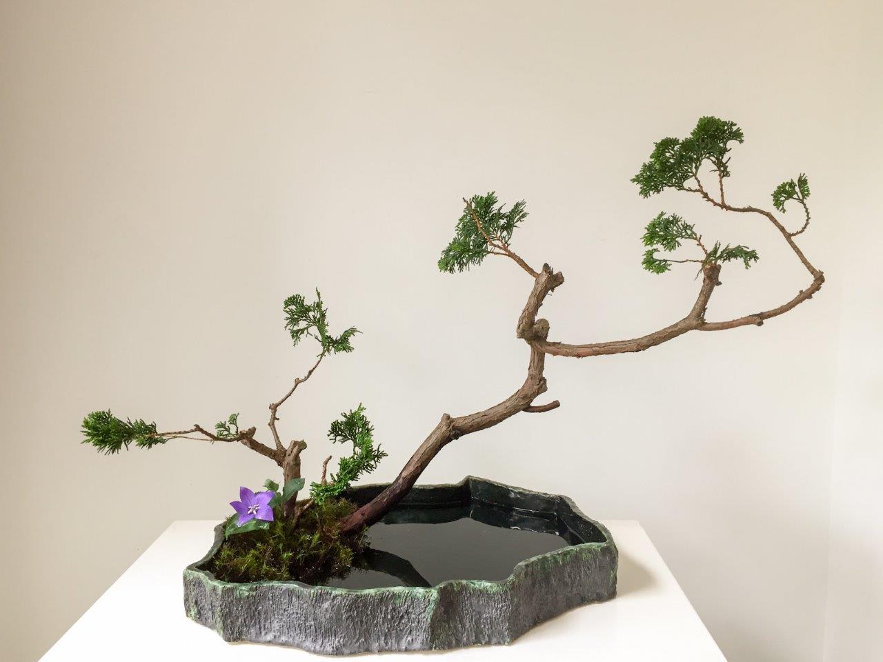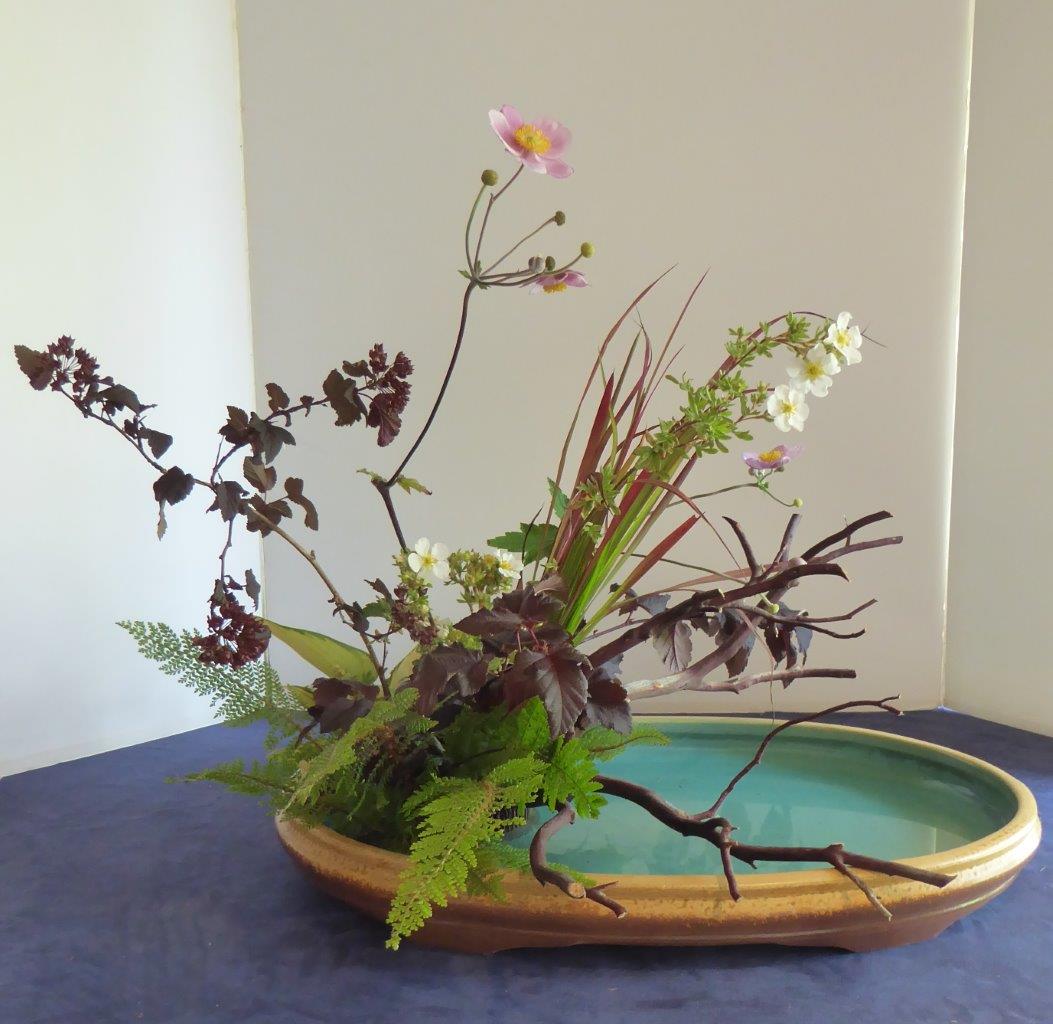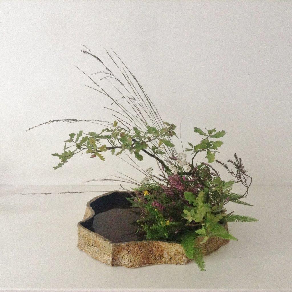 Het ‘landschap’ is een van de belangrijkste schikkingen van de Ohara School. Het ’traditionele landschap’ is aan duidelijke regels gebonden, terwijl er bij het ‘realistisch landschap’ meer ruimte is voor de eigen interpretatie. De deelnemers maakten ieder zowel een traditioneel als een realistisch landschap, maar waren binnen deze thema’s vrij in hun keuze. Ze hadden ook ieder hun eigen keuze aan plantaardig materiaal meegebracht. Het resultaat was een veelheid aan arrangementen.