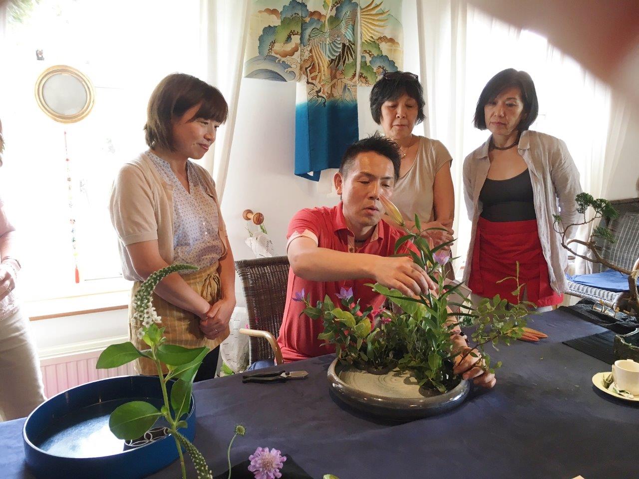 Satoshi Hirota, assistant professor van de Ohara Ikebana School Tokyo begeleidde de docenten tijdens de jaarlijkse studiedag, die plaatsvond op 16 augustus 2017. Op het programma stonden het ‘traditioneel en het realistisch landschap’.