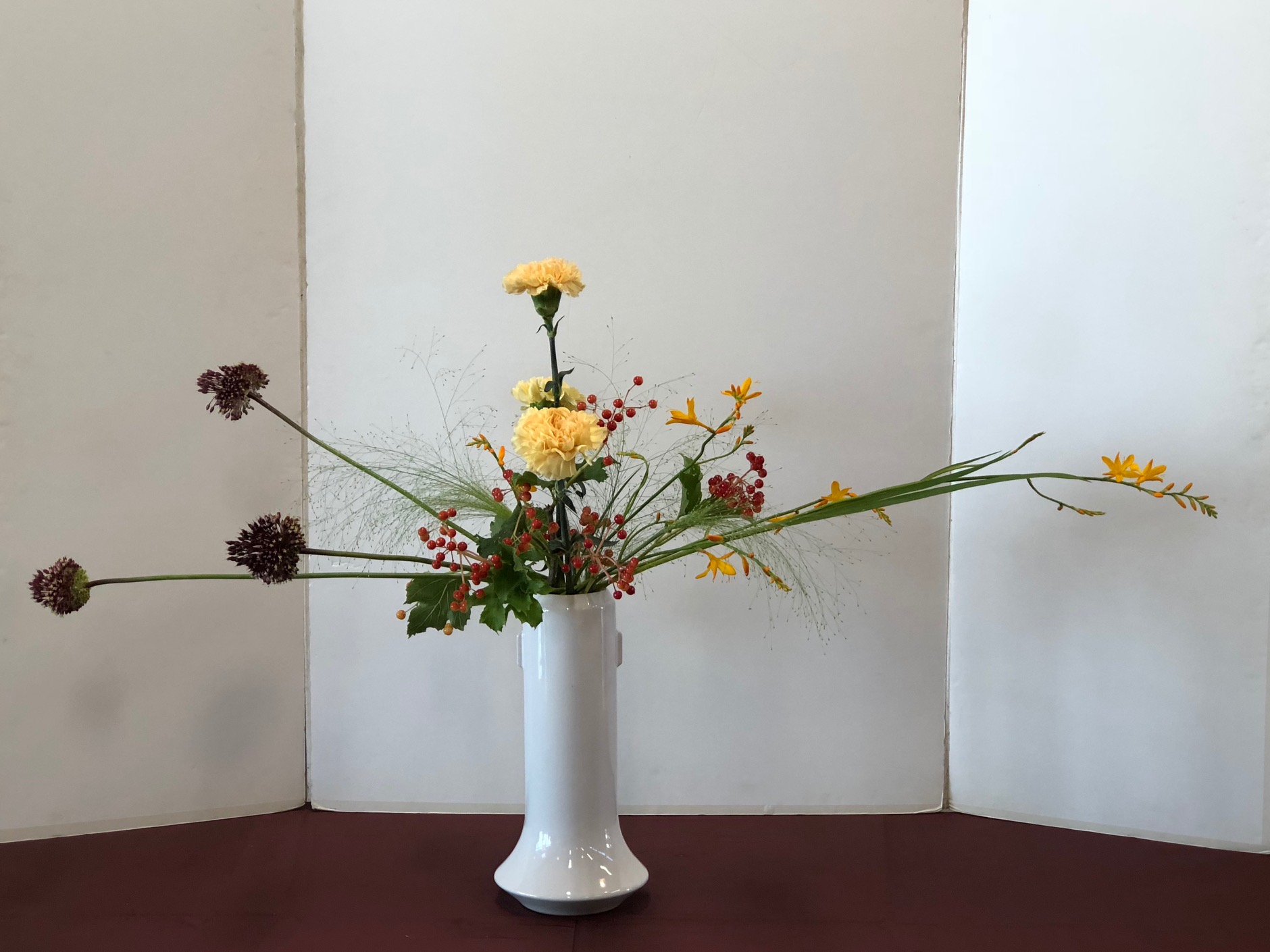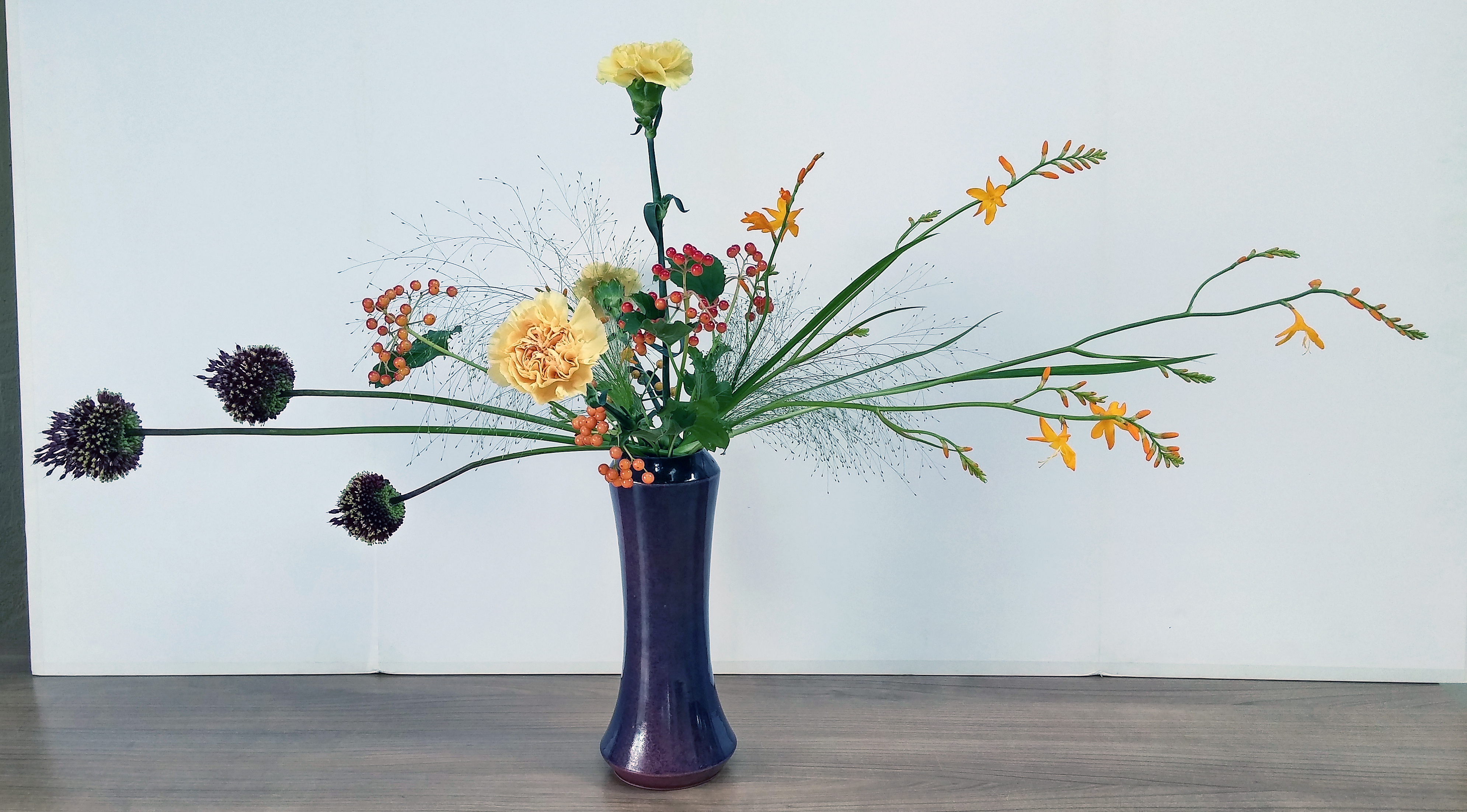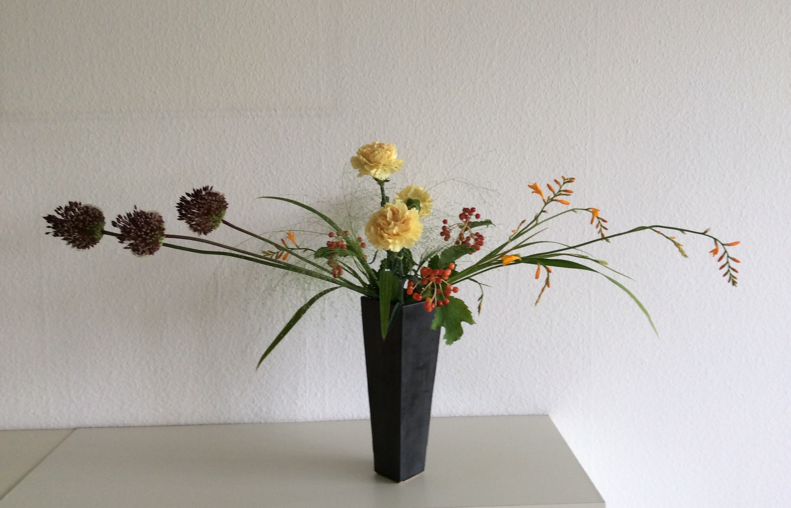 Satoshi Hirota, assistant professor van de raad van professoren van de Ohara School Tokyo heeft vier workshops gegeven aan leden van het Nederlandse Ohara Chapter. De workshops vonden plaats op 17 en 18 augustus 2018 in buurtcentrum De Boschbloem te Voorschoten. Op het programma stonden: een realistisch landschap, een Hiraku (radiale vorm), een Heika (schikking in een hoge vaas) en een Moribana waterreflecitng (schikking in een schaal). Professor Hirota gaf bij elke schikking een duidelijke uitleg en een demonstratie. Hij betoonde zich een vriendelijk en behulpzaam man en het ontbrak hem niet aan het nodige gevoel voor humor. De deelnemers hebben vol enthousiasme in een prima sfeer aan hun schikkingen gewerkt.