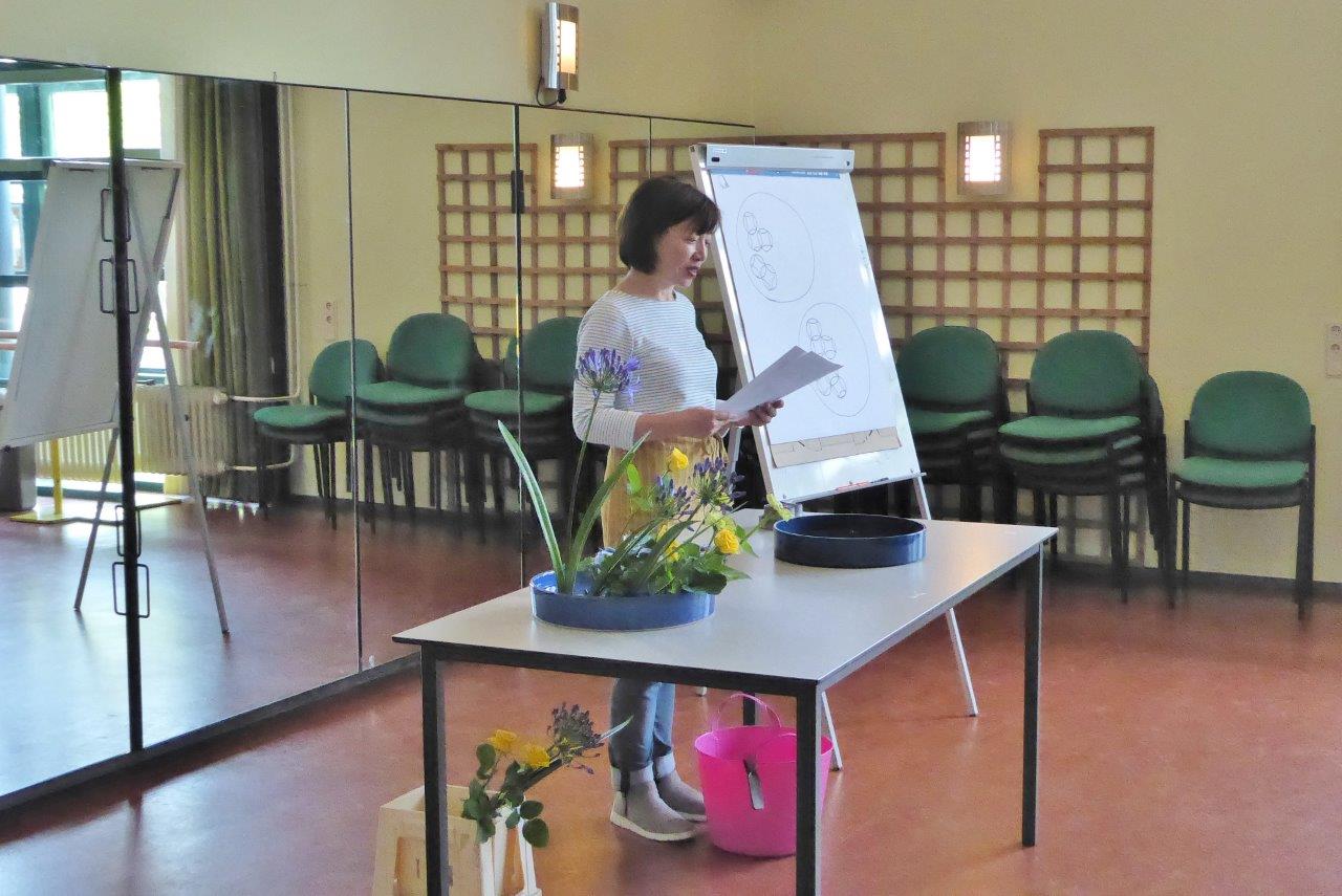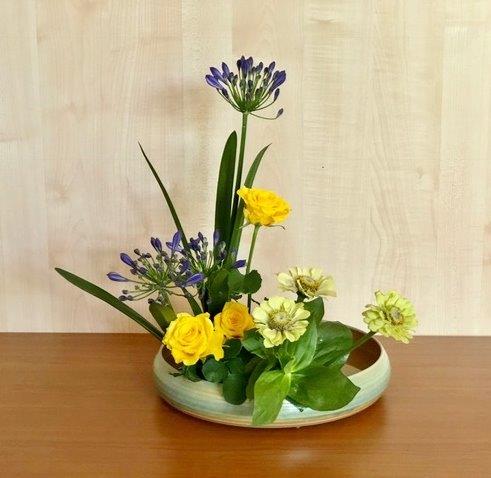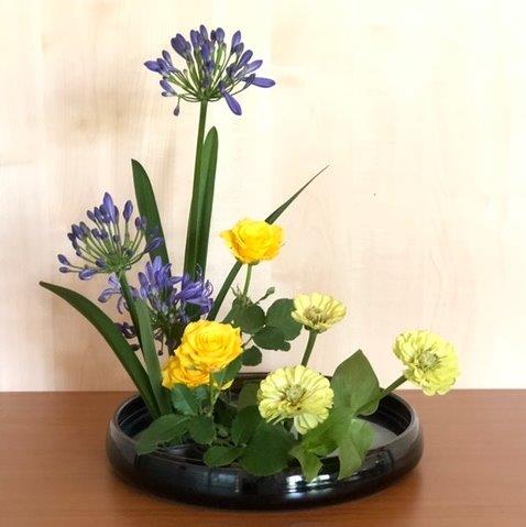 De workshop van 9 juni 2018 onder leiding van Noriko van Lit-Suzuki had als onderwerp een “Traditionele schikking” met Agapanthus.