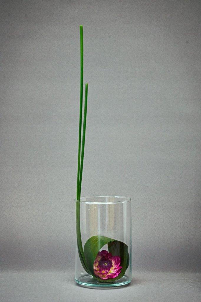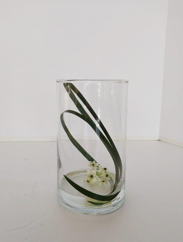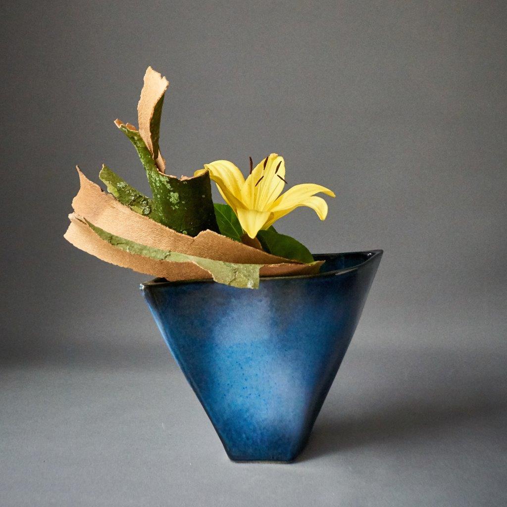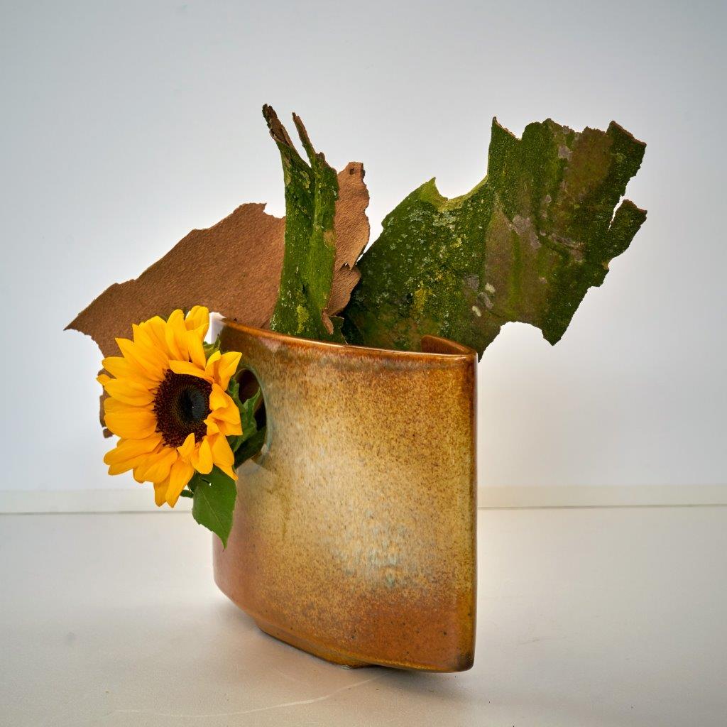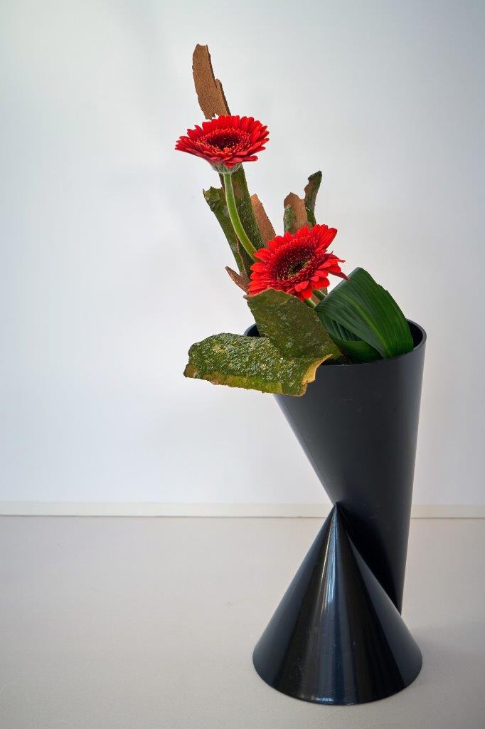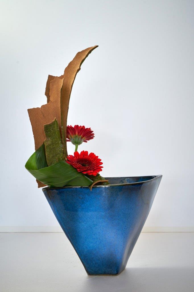 Vrije stijl in de Ohara School is niet zo eenvoudig te omschrijven. Maar misschien is dat wel het aantrekkelijke ervan. Er is veel vrijheid bij het maken van de schikking. De stijl is Irene Kho “op het lijf geschreven” en onder haar enthousiaste begeleiding hebben achttien leden van het Ohara Chapter een aantal leuke schikkingen gemaakt. Het hoofdmateriaal was schors van de Plataan. Als kleurig accent werden zonnebloemen of Gerbera ’s gebruikt. Een tweede schikking werd gemaakt in een glazen cilinder.