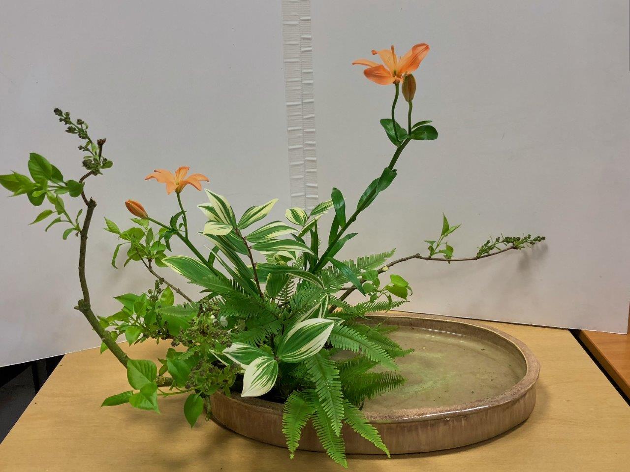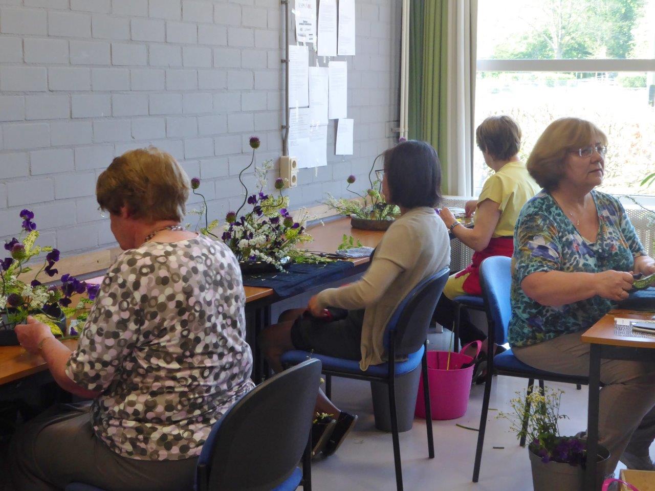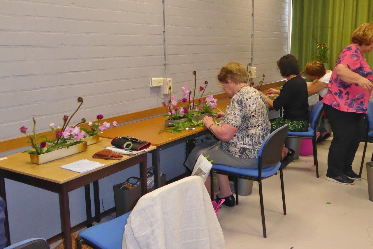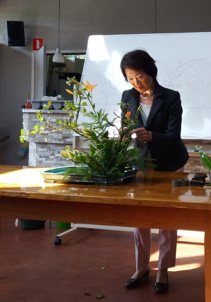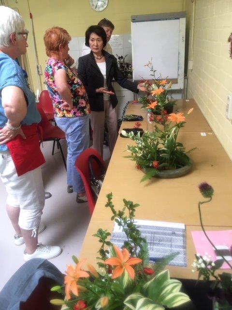De Japanse docente Yoshiko Ishibashi, professor van de Ohara Ikebana School Tokyo, gaf in het weekend van 21 en 22 april 2018 vier workshops aan leden van het Ohara Chapter. De deelnemers hebben een ‘realistisch landschap’, een ‘kleurenschema’, een vaasschikking en een ‘lijnschikking’ gemaakt. Bij de laatste drie stijlen werden, afhankelijk van het niveau van de deelnemers, verschillende versies van het arrangement uitgevoerd.