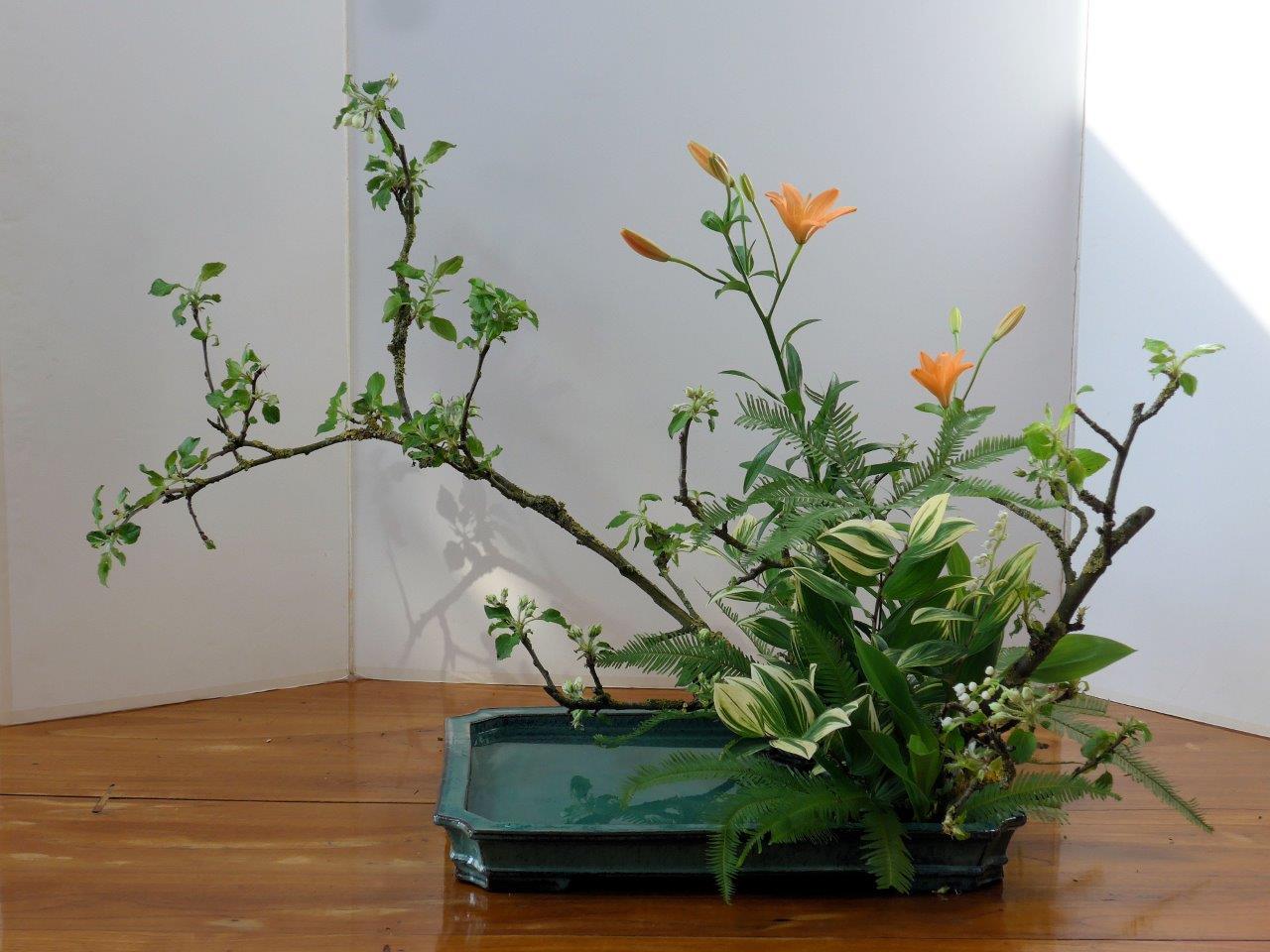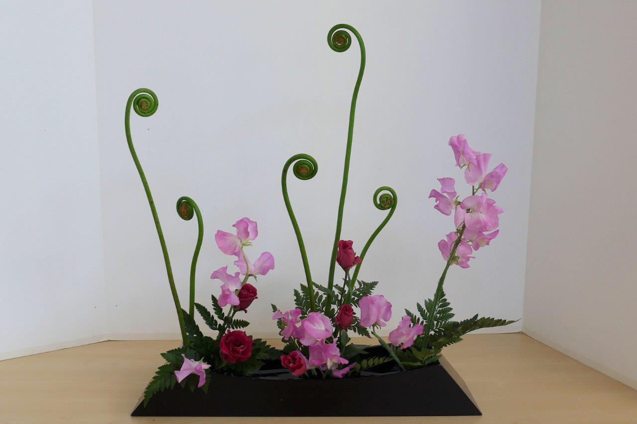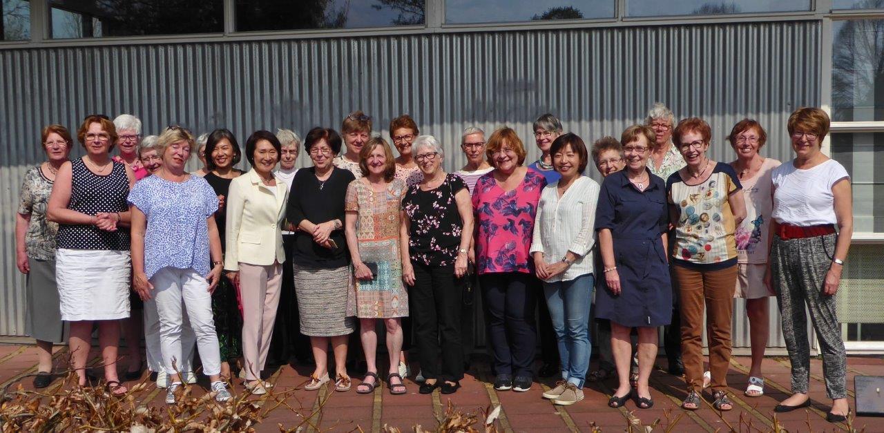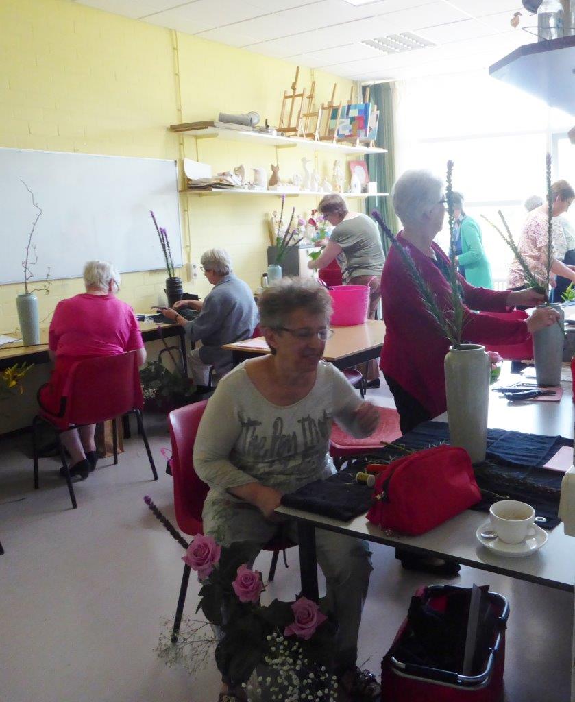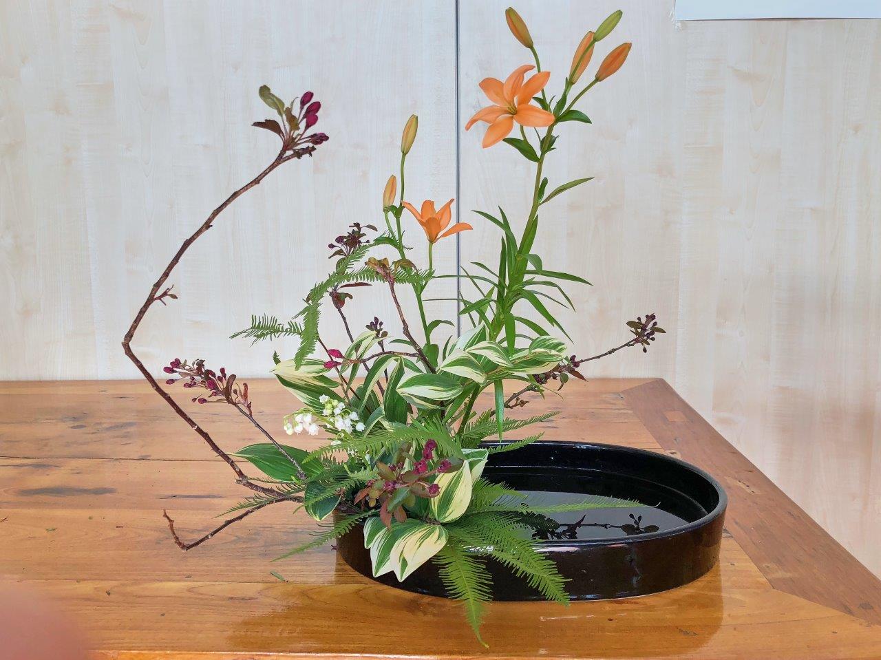 De Japanse docente Yoshiko Ishibashi, professor van de Ohara Ikebana School Tokyo, gaf in het weekend van 21 en 22 april 2018 vier workshops aan leden van het Ohara Chapter. De deelnemers hebben een ‘realistisch landschap’, een ‘kleurenschema’, een vaasschikking en een ‘lijnschikking’ gemaakt. Bij de laatste drie stijlen werden, afhankelijk van het niveau van de deelnemers, verschillende versies van het arrangement uitgevoerd.