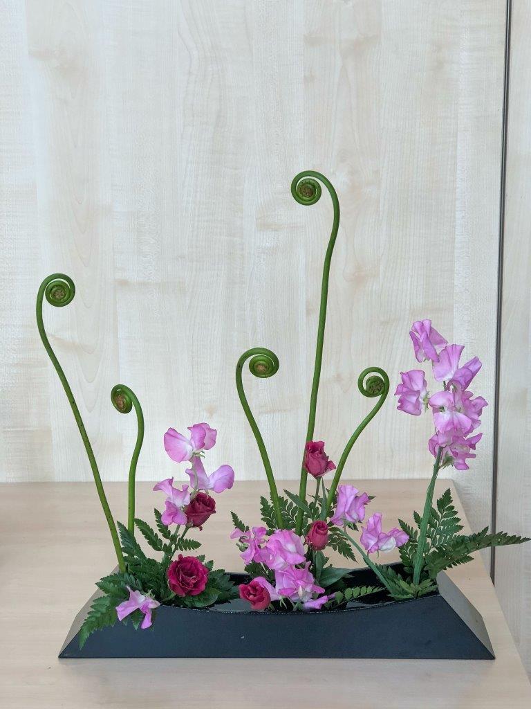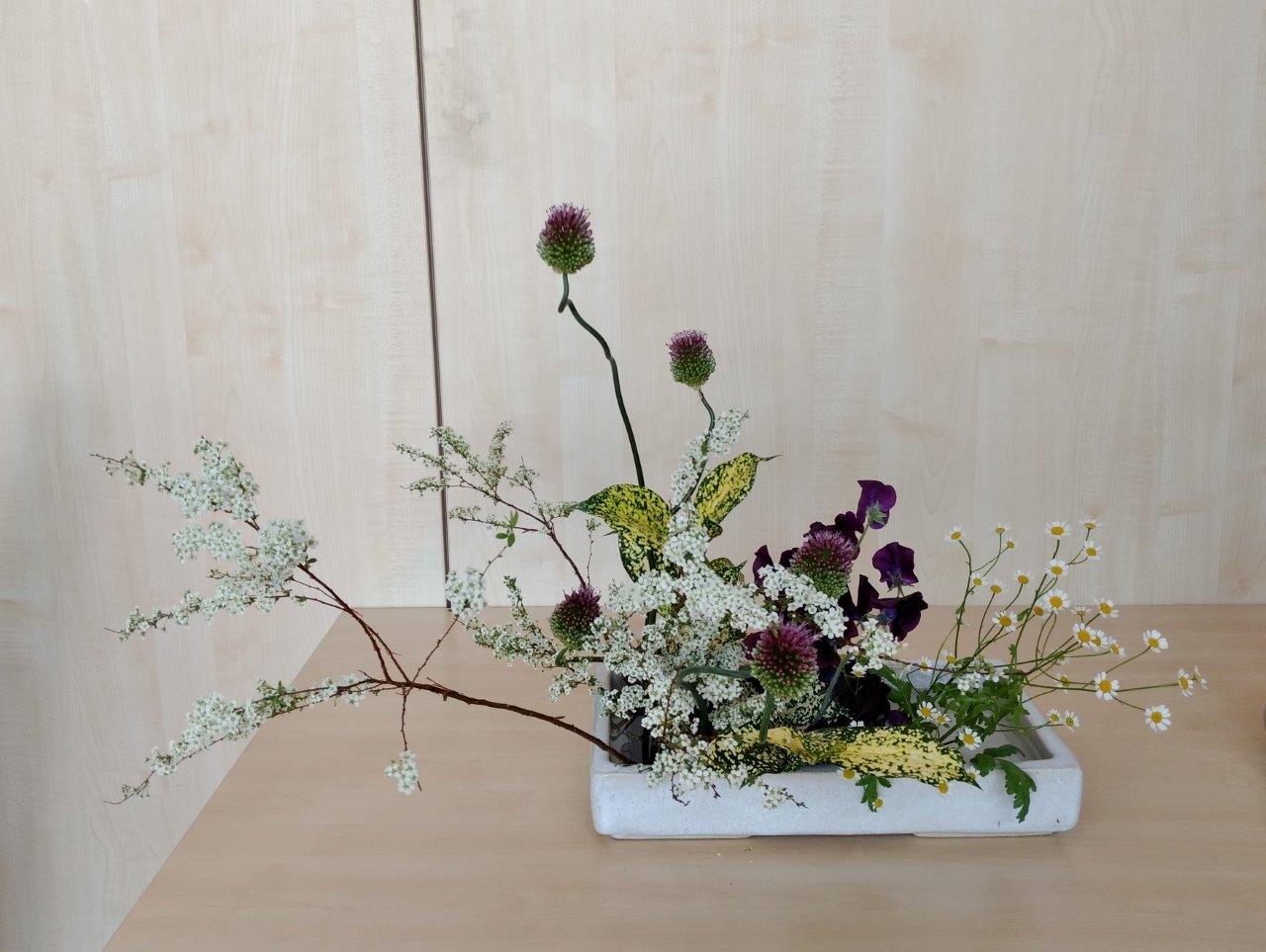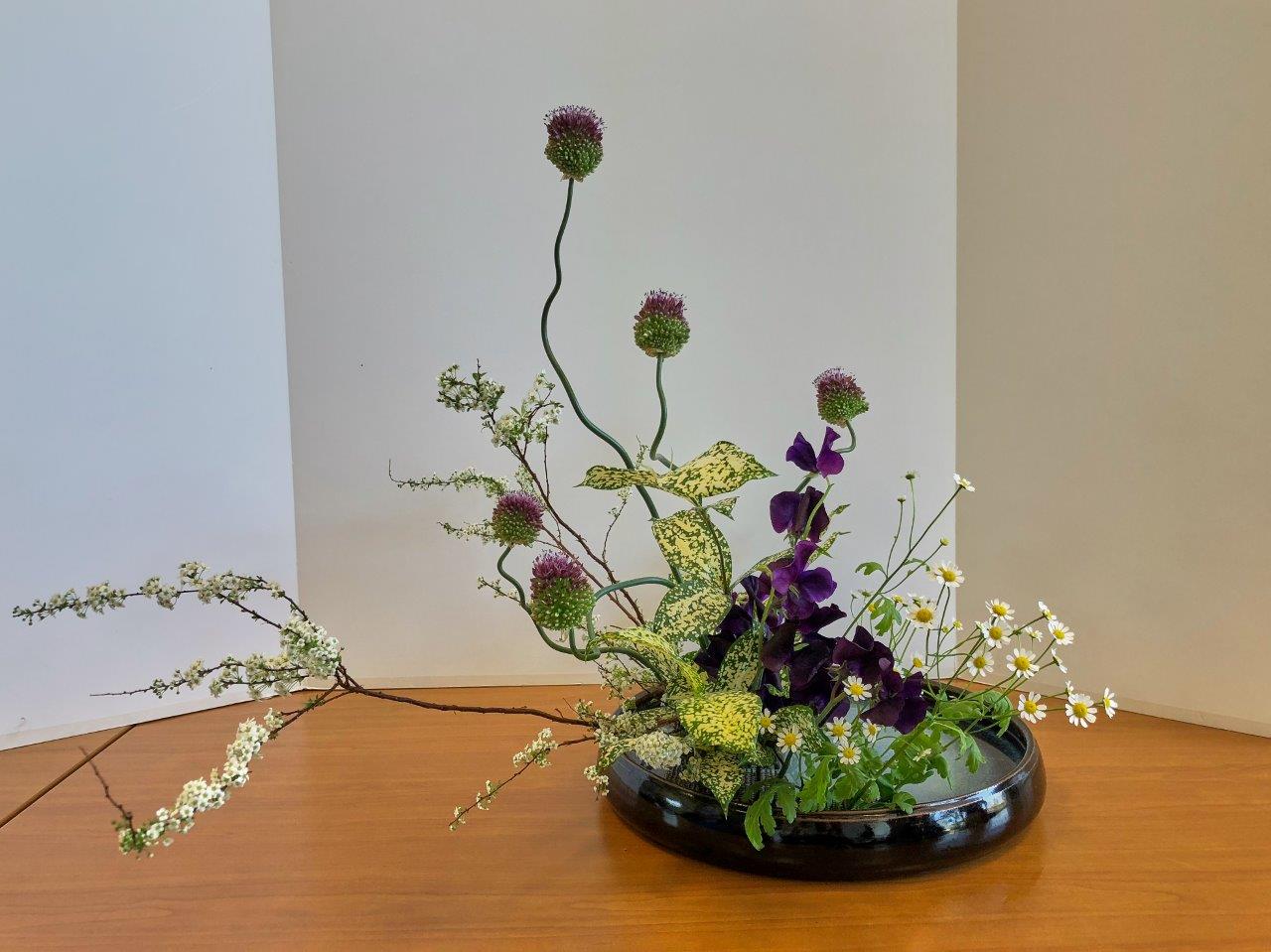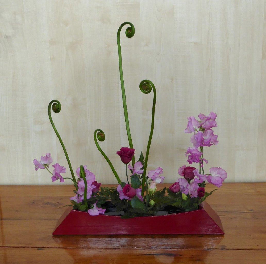 De Japanse docente Yoshiko Ishibashi, professor van de Ohara Ikebana School Tokyo, gaf in het weekend van 21 en 22 april 2018 vier workshops aan leden van het Ohara Chapter. De deelnemers hebben een ‘realistisch landschap’, een ‘kleurenschema’, een vaasschikking en een ‘lijnschikking’ gemaakt. Bij de laatste drie stijlen werden, afhankelijk van het niveau van de deelnemers, verschillende versies van het arrangement uitgevoerd.